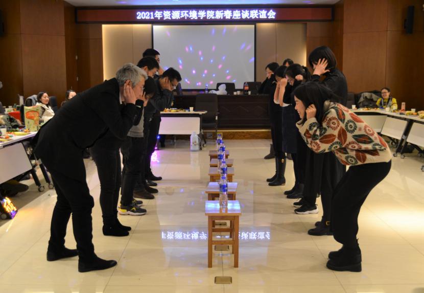 在繁忙的期末工作之余,师生们精心准备、编排了精彩纷呈的节目。舞蹈《X-X》、相声《云旅游》及军体拳表演,展现了老员工的昂扬的精神风貌,给老师们送来了温暖的新年祝福。刘建红老师演唱的《中国人》,展现出了中国精神、中国力量、中国担当,激励大家携手共创辉煌。院领导班子带来的深情诗朗诵《新年好,资环人!》,展现了资环人的情怀和力量,激励资环人携手开拓创新、奋斗进取。联欢会在精彩的节目中还穿插了趣味游戏环节,极大地调动了老师们的热情,提升了联欢会的趣味性和参与度。