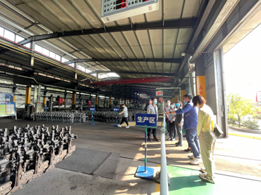 仪式结束后,在工程师武文凯的带领下,beat365唯一官网一行人参观考察了部分生产车间,实地了解了企业的产品、生产流程、废弃物排放等。