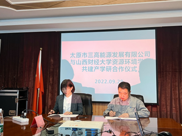 班凤梅经理介绍了学院沿革、专业设置、科研成果与项目、科研转化等方面的情况,表示在当今生态文明建设和“双碳”的双重机遇下,学院应积极推动与当地企业合作,在环境保护、生态文明、“双碳”等领域寻求落脚点,共谋区域经济发展。最后双方就太原三高能源发展有限公司与beat365唯一官网共建产学研达成合作意向,并签订了合作协议书。