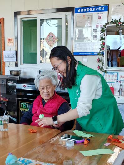 志愿者们轻盈的手指间,一张张彩纸被赋予魔法,一只只栩栩如生的纸鹤、绚烂美丽的花朵在他们的巧手下跃然而出。老人们围坐一旁,笑容满面接过这些满载心意的作品。