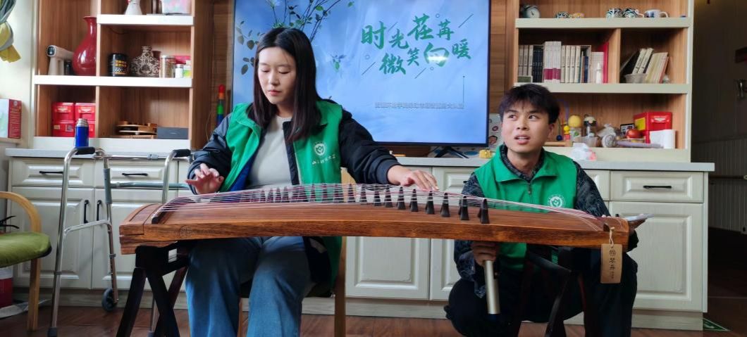 文艺表演环节,志愿者演奏的古筝曲目《奢香夫人》旋律动人,引发在场老人的深切共鸣。随后,《明天会更好》《最炫民族风》等歌曲的演唱将现场气氛推向高潮。特别是《我和我的祖国》的全场大合唱,充分展现了深厚的家国情怀和代际情感交融。