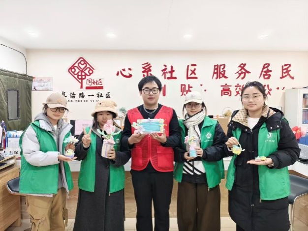 在维护基础环境的同时,志愿者们运用扭扭棒精心制作花卉、蝴蝶等手工作品,将生态美学理念转化为生动的社区微景观。这些创意作品不仅点缀了社区公共空间,更成为传播环保理念的独特载体,获得社区工作人员的高度好评。同时,绿动大队与社区工作人员就环境美化方案、生态理念传播等议题进行了充分交流。社区助理杨忠麟评价道:“志愿者们带来的不仅是环境的改善,更有专业的视角和青春的创造力,为社区建设注入了新的活力。