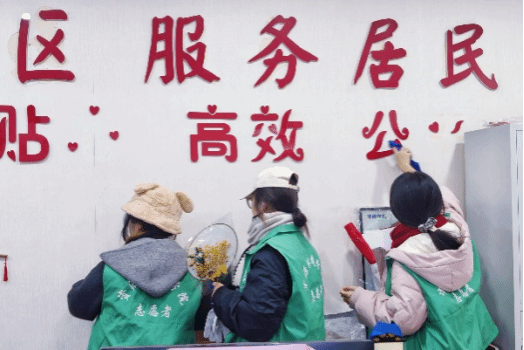 随后,志愿者们开展环境美化创新实践,他们分工协作,干劲十足,手持扫把、抹布等工具,细致擦拭社区的每一处桌椅、仔细清洁公共设施、认真打扫各个角落。阳光透过窗户,照亮了他们忙碌的身影,每一滴汗水都映照着奉献的光泽。随着灰尘被拂去,社区环境逐渐显露出明亮整洁的新颜。那一个个弯腰清扫、踮脚擦拭的身姿,宛若冬日里跃动的暖色,为整个社区注入了清新与活力。