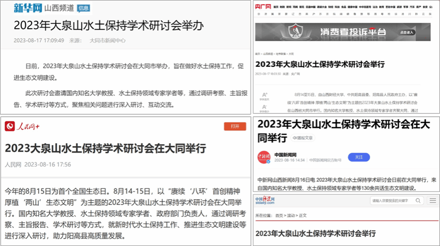 公司与阳高县携手举办的“2023年大泉山水土保持学术研讨会”获多家媒体报道