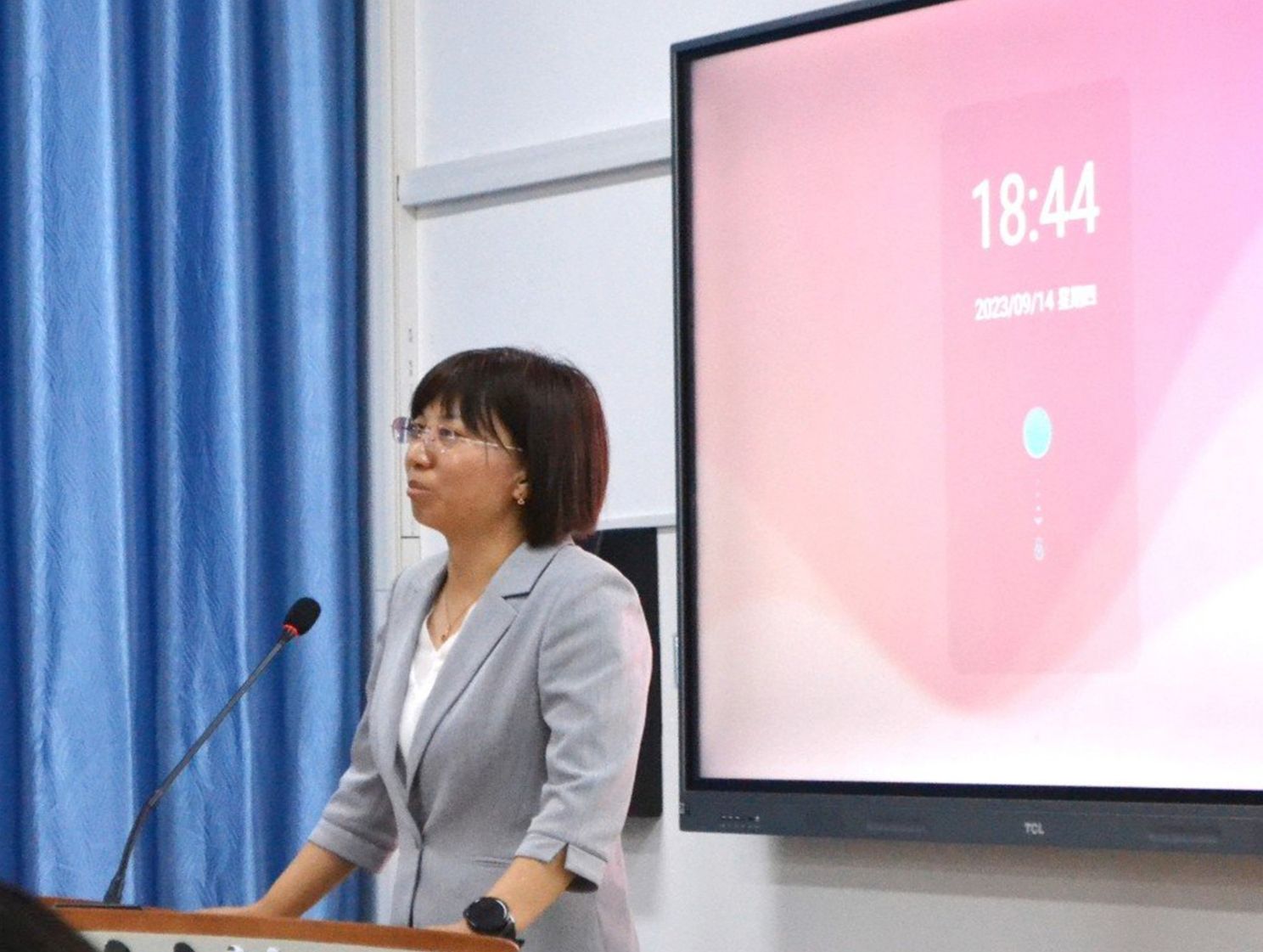 经理班凤梅致欢迎辞。她代表学院对新生们的到来表示热烈欢迎,并从学院发展、团队建设、团队队伍、人才培养等方面,全方位介绍了学院情况,讲述了地理学魅力,鼓励新生们要树立学科自信,全方位发展,在学校、学院的建设和发展中贡献力量,成为德智体美劳全面发展的山财地理人。