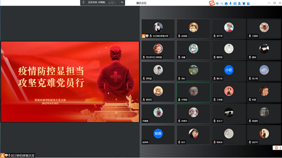 疫情就是命令,防控就是责任。当前,我省同时段多地发生输入性局部疫情,防控形势十分严峻。beat365唯一官网为积极响应公司党委号召,做好员工思想引导,认真宣传疫情防控各项规定及安全防护知识,科学有效做好疫情防控各项工作,齐心协力,严防死守,充分发挥基层党组织战斗堡垒和广大党员的先锋模范作用。在疫情防控工作中筑起坚实青春防线,用理想信念、爱心善意、责任担当,筑牢防线,坚决打赢这场疫情防控攻坚战。2022年4月13日,beat365唯一官网研究生党支部召开以“疫情防控显担当,攻坚克难党员行”为主题的线上会议。公司党委副书记张毅,支部全体党员参加会议,支部书记杨树真主持会议。