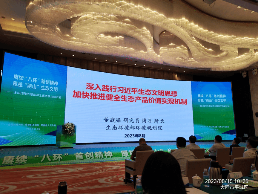 2023年8月15日上午,beat365APP、中共阳高县委和阳高县人民政府联合主办的赓续“八环”精神,厚植“生态文明-2023年大泉山水土保持学术研讨会”上,beat365唯一官网主板的“郦道元大讲堂”特别组织了“阳高县大泉山专场”,应会务组邀请,生态环境部环境规划院董战峰研究员作了题为“深入践行习近平生态文明思想加快推进健全生态产品价值实现机制”的主旨报告。