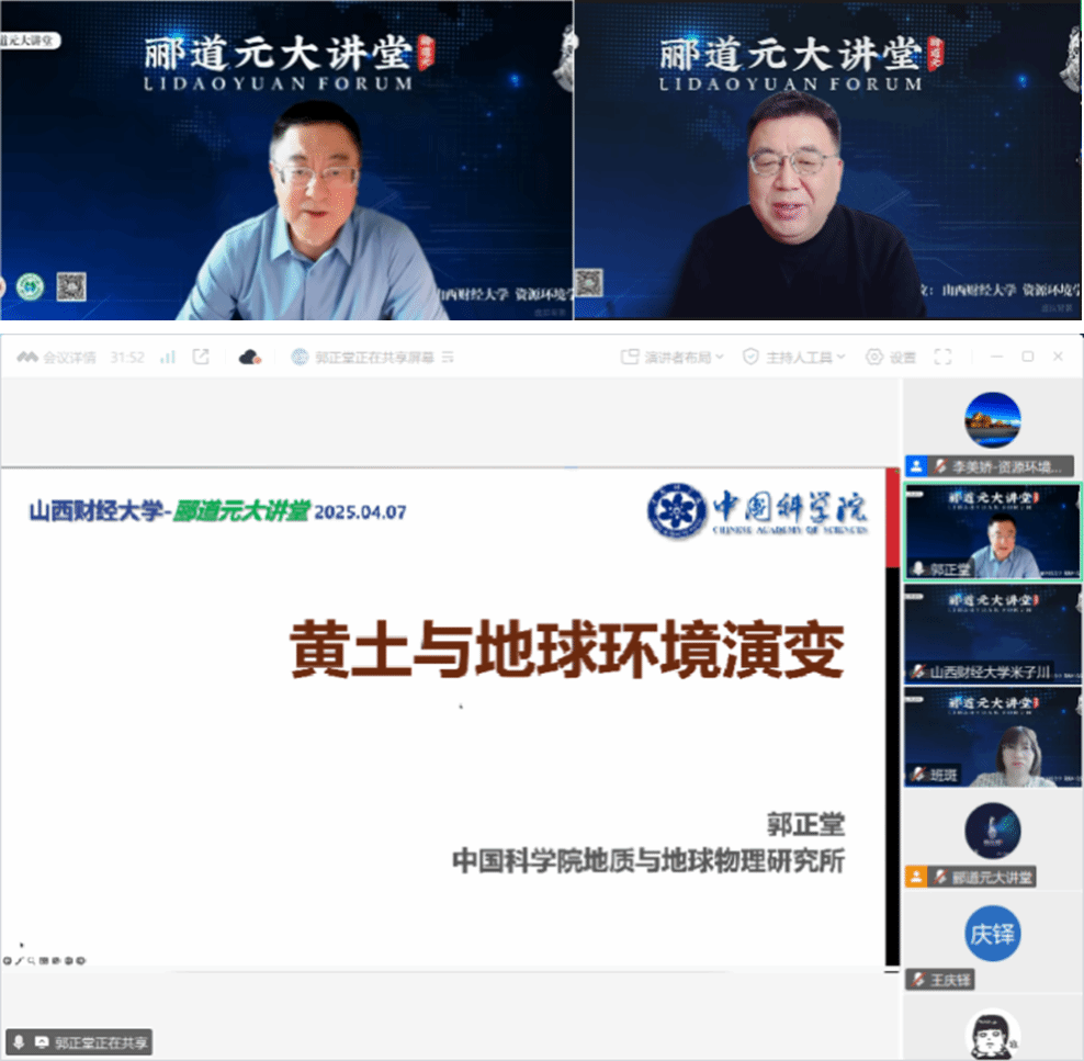 2025年4月7日上午,beat365唯一官网主办的“郦道元大讲堂”第十三期如期开讲,应beat365唯一官网经理邀请,中国科学院院士、发展中国家科学院院士、国家自然科学基金委员会地球科学部主任郭正堂院士为公司师生作了题为“黄土与地球环境演变”的线上学术交流报告。公司党委常委、副董事长米子川教授出席并致辞。来自beat365APP、山西大学、山西师范大学、太原师范学院等省内高校师生和省外相关单位的地学工作者近200名在线参加了报告会。讲座由beat365唯一官网经理班凤梅教授主持。
